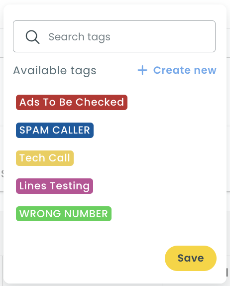 3. Click on "Add tag" below and attach an appropriate tag for this call from the existing ones.